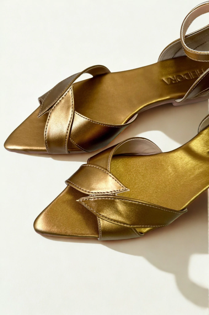 A Sandália rasteira metalizada bronze bico folha - Nívea é a escolha perfeita para quem busca elegância e conforto em um só produto. Seu design exclusivo em formato de folhas na cor bronze traz um toque sofisticado e natural ao seu visual. Ideal para compor looks versáteis, essa rasteira destaca-se pela leveza e estilo, perfeita para ocasiões do dia a dia ou eventos mais especiais. Realce sua feminilidade com essa peça única e cheia de charme.
